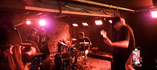 The first band finally goes on and this is their very first show played , the five members of BLACKENED HORIZONS played a hella good set in the pit of hell of Jerry's basement (considering it was 99 outside it was probably 105 or plus downstairs) and how would I describe the band , well that's kinda hard but the best description I could give is that if CRASS, NAUSEA and MISERY had an illegitimate child , does that sound kinda weird yeah it does , but I liked the bands sounds and hope to hear more from them and hopefully I'll be able to make it out and be able to see them play again.
